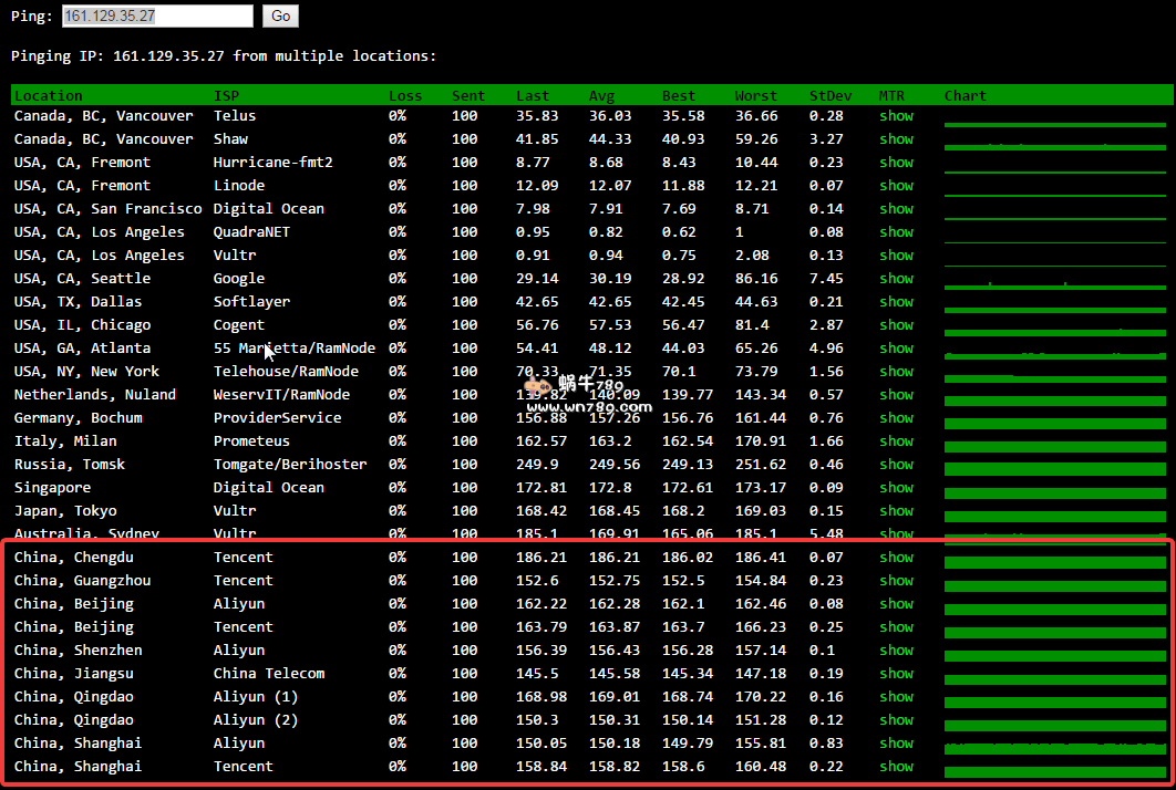 | 华南地区 | 13 | 广东佛山电信(30CN.NET) 152.9 毫秒 | 广东茂名(电信) 173.0 毫秒 | 160.4 毫秒 |