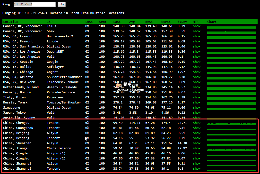 | 20 | 103.31.254.1 | 103.31.254.1 | 日本 | AS17676 | 69.1 / 69.1 / 69 |
