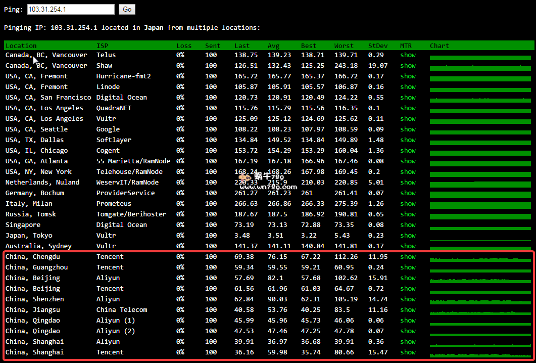 | 20 | 103.31.254.1 | 103.31.254.1 | 日本 | AS17676 | 87.8 / 87.4 / 87.5 |