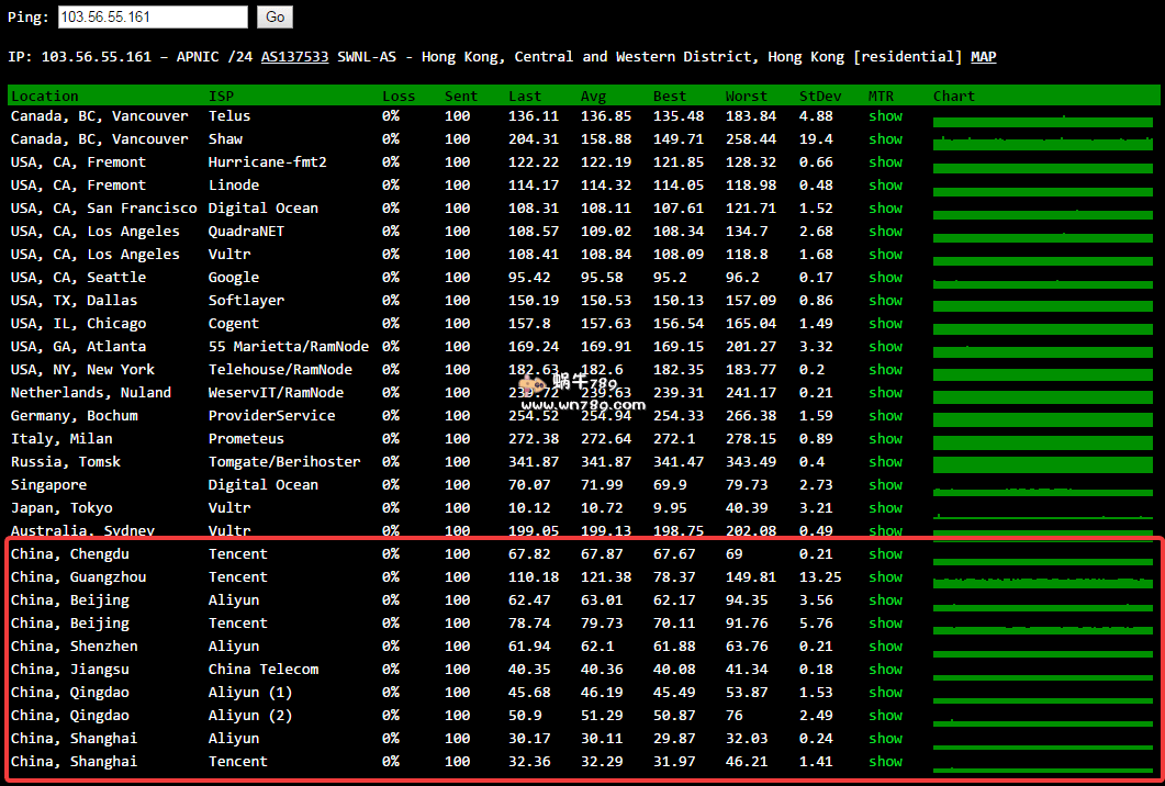 | 7 | 219.158.19.82 | 219.158.19.82 | 上海 联通 | AS4837 | 17.6 / 15.3 / 12.5 |