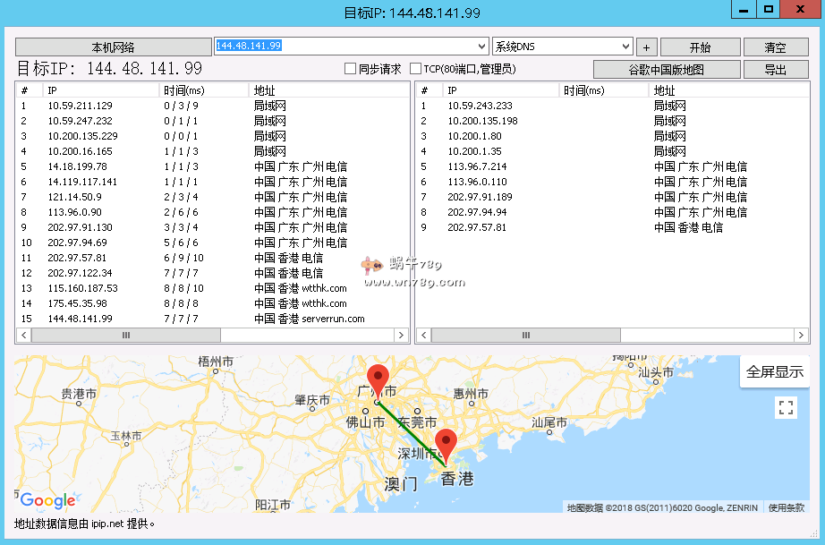 | 10 | 223.120.2.13 | 223.120.2.13 | 香港 移动 | AS58453 / AS9808 | 48.5 / 47.9 / 48.1 |