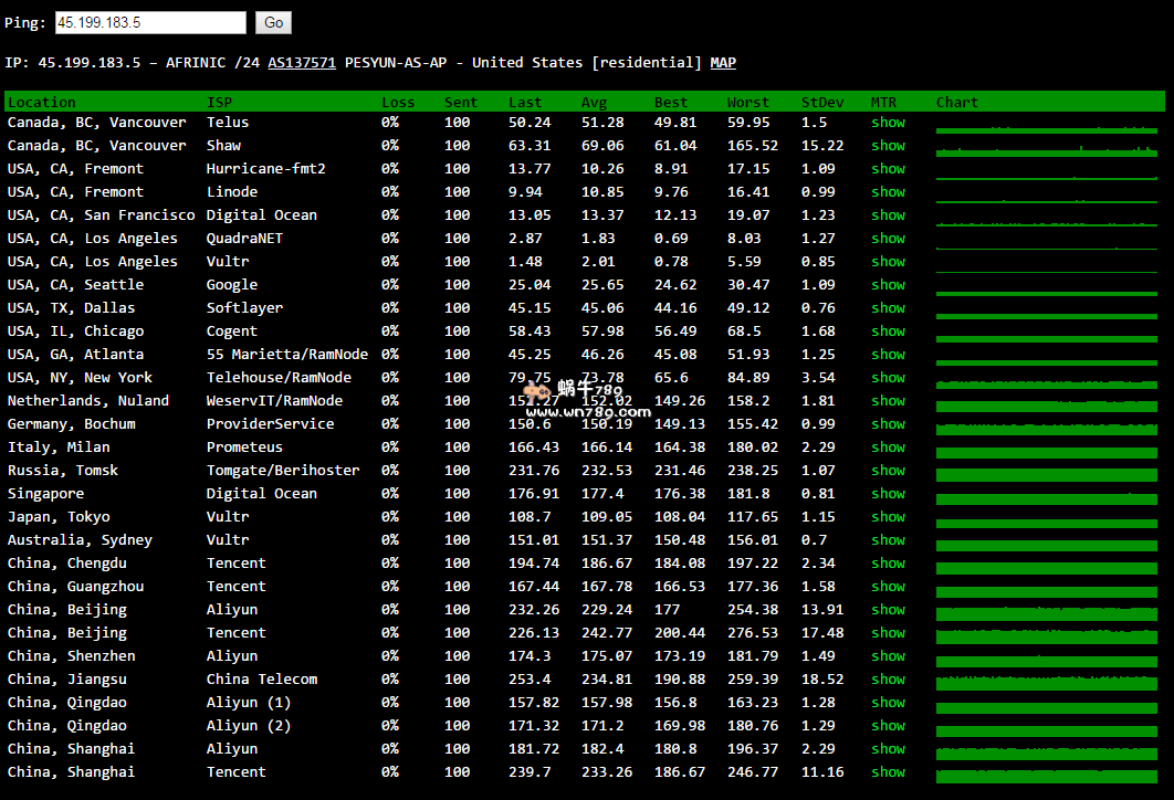 | 13 | 45.199.183.5 | 45.199.183.5 | 美国加利福尼亚州洛杉矶 cloudinnovation.org | AS137571 | 169.6 / 170.1 / 173 |