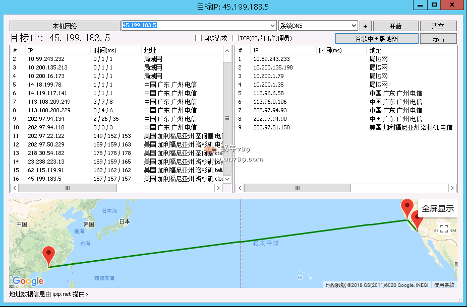 | 9 | 219.158.117.10 | 219.158.117.10 | 美国加利福尼亚州洛杉矶 联通 | AS4837 | 182.5 / 188.3 / 189.7 |