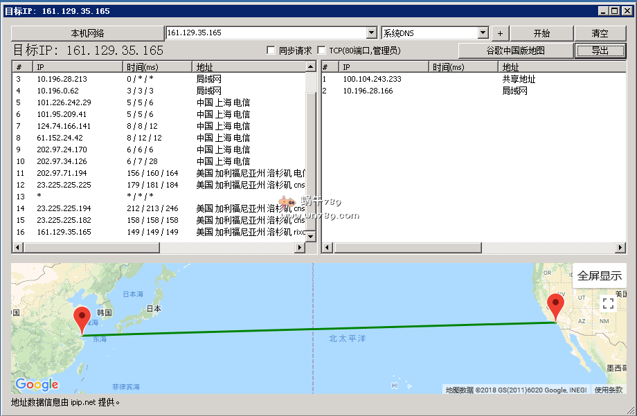 | 13 | 202.97.71.194 | 202.97.71.194 | 美国加利福尼亚州洛杉矶 电信 | 169.5 / 167.3 / 164.9 | |