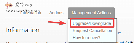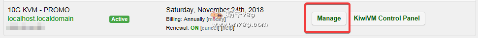 1、进入VPS管理页面,在自己要升级配置的VPS后面点击“Manage”。