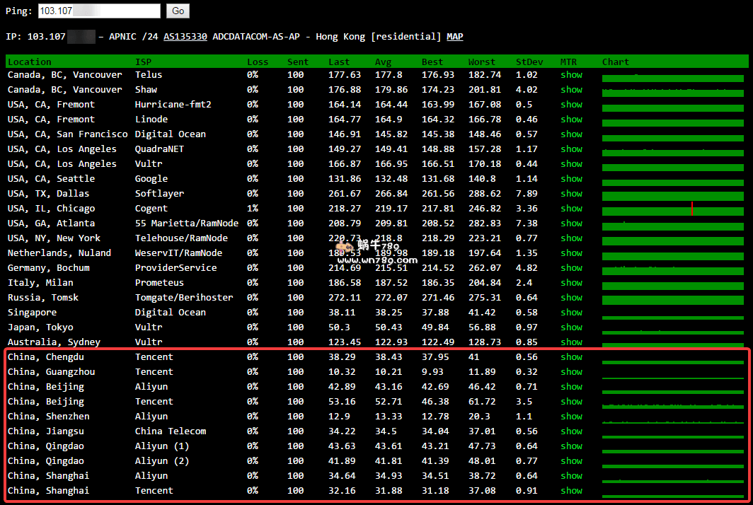 | 10 | 14.136.143.13 | 14.136.143.13 | 香港 hkbn.com.hk | AS9269 | 50.8 / 52.4 / 41.9 |