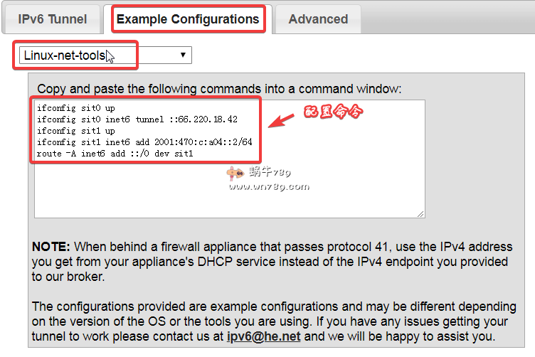 到这里我们IPv6地址已经申请完成了上面的信息请保存着,特别是配置命令,我们后面有两个地方需要用到。