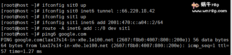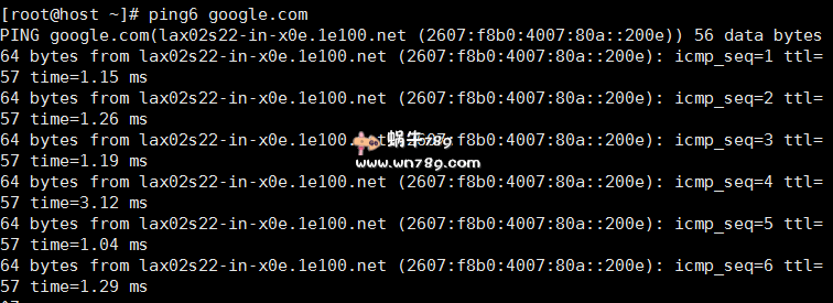4、最后重启服务器,再使用“ping6 google.com”ping下谷歌,如果正常,表示在VPS已经成功部署IPv4。