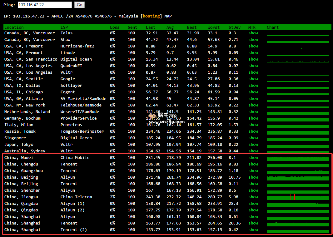 | 13 | this server IP | 美国加利福尼亚州洛杉矶 wawahost.com.my | 172.7 / 172.6 / 176.1 |
