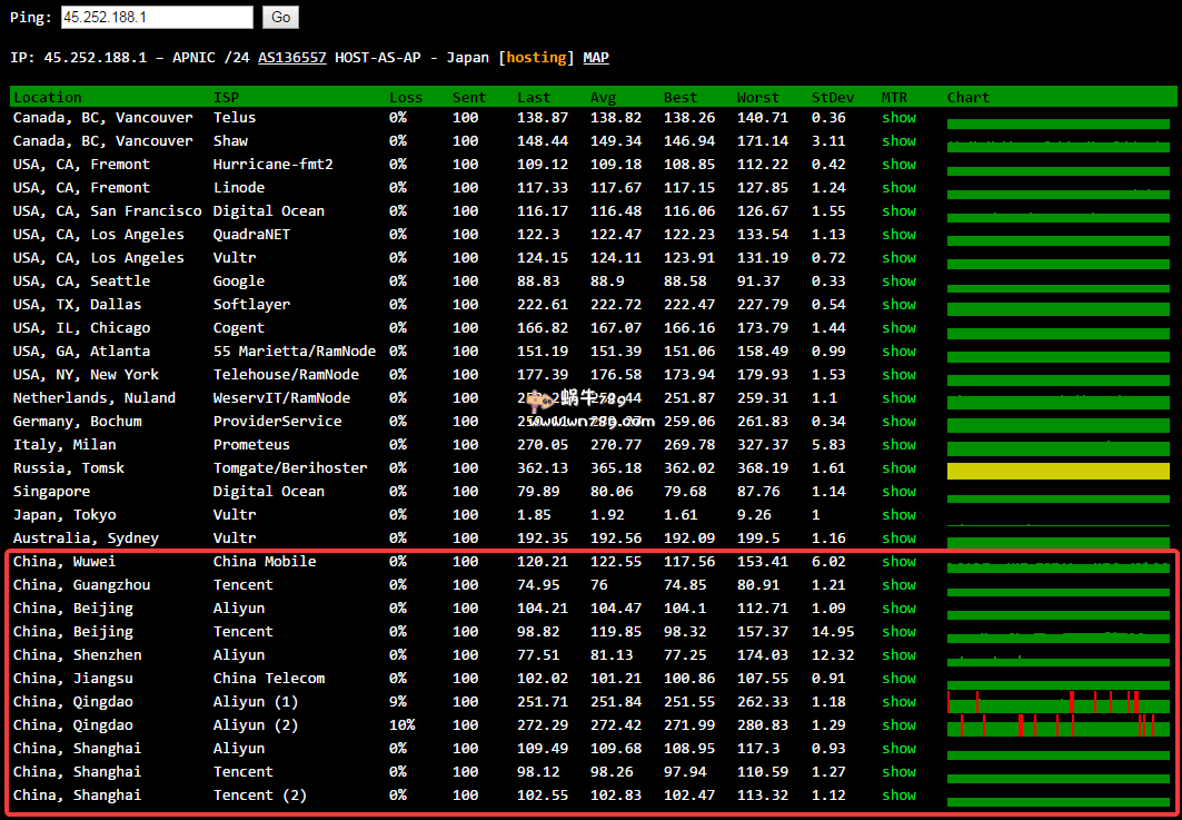 | 17 | 103.97.52.43 | 103.97.52.43 | 日本东京都东京 coloau.com.au | AS63956 | 104.9 / 104.9 / 104.9 |