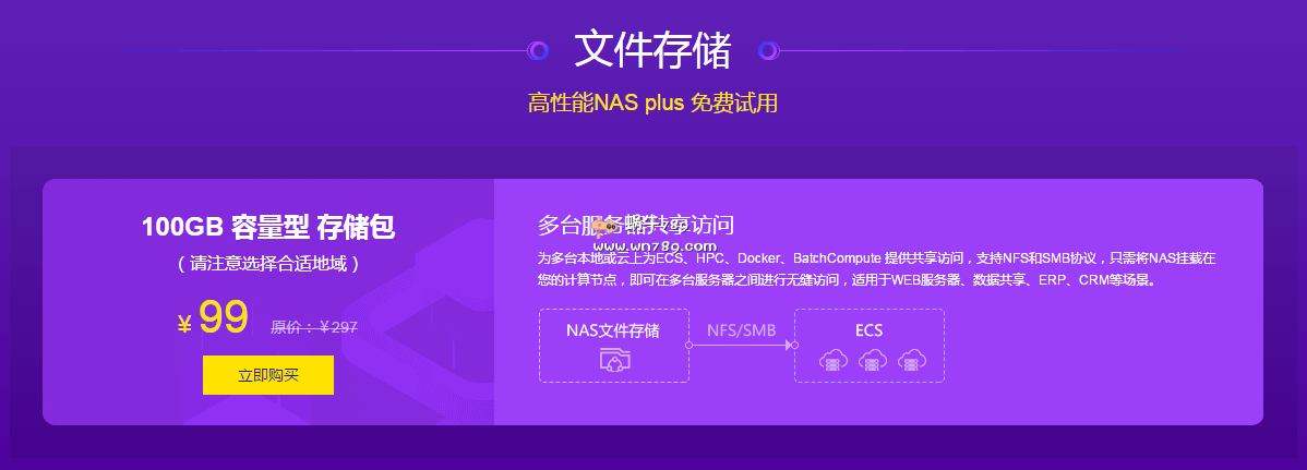 2、文件存储特惠活动。活动时间内,新老用户可以享受99元新购100G容量型存储包一年的活动。