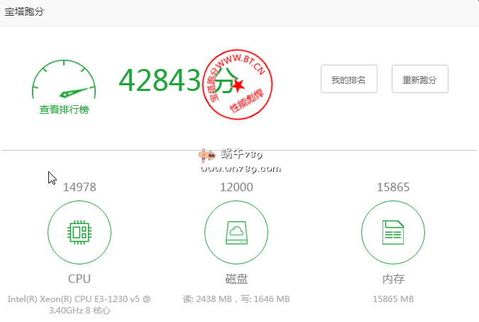 1、服务器基本信息测试。E3-1230 v5 @ 3.40GHz处理器、8核16G内存、1TB硬盘,测试结果与开通配置相符合。