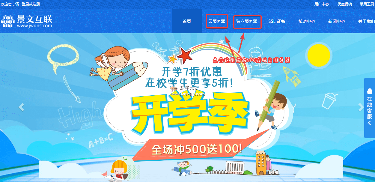 景文互联是国人创办的主机销售商,成立于2012年,主要从事日本大阪(自营,中国软银直连)、中国香港沙田(cn2直连)、新加坡(BGP线路)、美国洛杉矶(C3机房,cn2 GIA)四个数据中心的VPS及独立服务器销售,都是精选到中国大陆访问速度优异的机房。VPS全部采用KVM虚拟技术架构、SSD固态硬盘或Raid10架构、E5系列处理器,无论是在性能方面还是在带宽分配方面都比较有优势,是一个适合稳定建站的商家。景文互联今天发布了最新开学优惠促销:活动一:VPS产品7折优惠,优惠码FO2TK2B6EW;活动二:在校学生5折优惠,优惠期限到毕业为止,下单后提交工单附带手持学生证;活动三:充500送100,充值后提交工单申请赠送;活动四:独立服务器下单立减300元,下单后提交工单申请改价。