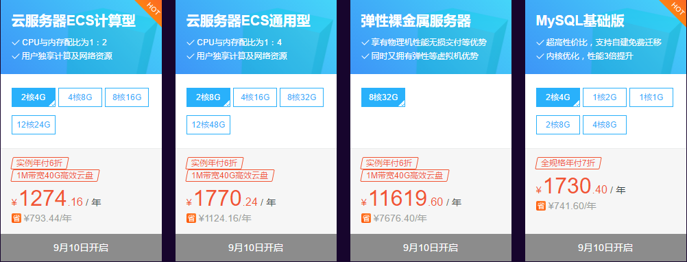 2018年9月10日—2018年9月14日,用户通过活动页面购买指定云产品,可享受限时特价,不限购买台数(云存储产品除外)。下面站长只列举了云服务器等产品。