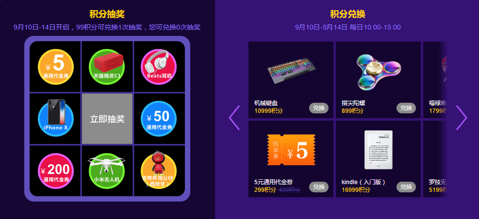 每99积分可兑换1次抽奖机会,同一用户账号1天最多兑换3次抽奖机会。