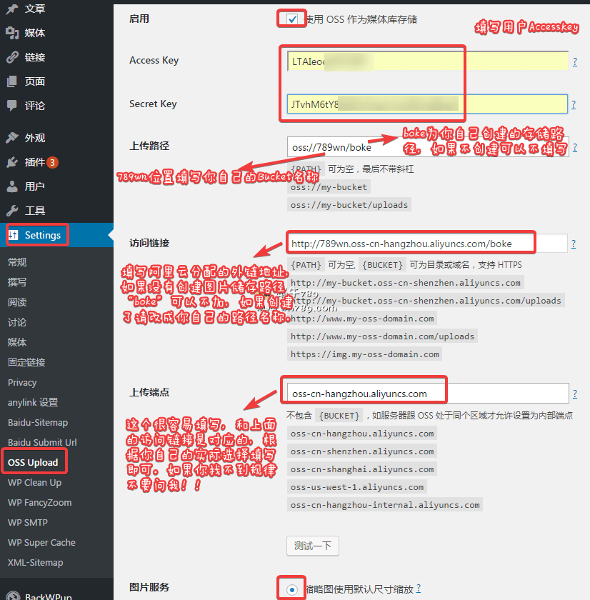 记得前几天有博友问站长有什么插件能不能把WordPress媒体(图片)文件存储到阿里云对象存储OSS里面,从而实现博客直接从阿里云对象存储OSS调取地址展示图片,达到降低VPS(或虚拟主机)存储、带宽方面的压力。特别是目前国内VPS主机大多都是分配1Mbps带宽端口,可能运行一个纯文字的博客还是没有什么压力,但是要想在1Mbps带宽端口的服务器上展示大量图片恐怕还是有点问题的。今天看到一款比较实用的WordPress插件——OSS Upload,可以直接把图片上传到自己的阿里云对象存储OSS,而且文件不保存在本地服务器,并自动调取展示地址,非常实用,下面就简单介绍了此插件的使用及配置过程。