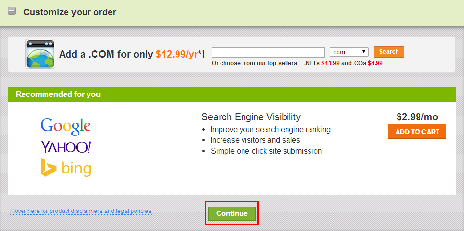 定制订单,如果不需要相关产品,直接点击“Continue”继续