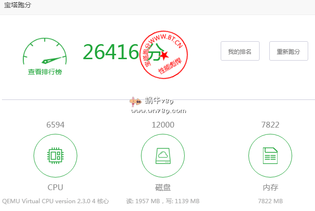 ---------------------------------------------------------------------- CPU Model : QEMU Virtual CPU version 2.3.0 CPU Cores : 4 Cores @ 2659.998 MHz x86_64 CPU Cache : 4096 KB OS : CentOS 7.4.1708 (64 Bit) KVM Kernel : 3.10.0-693.el7.x86_64 Total Space : 48.0 GB (1.5 GB Used) Total RAM : 7822 MB (152 MB Used 457 MB Buff) Total SWAP : 2043 MB (0 MB Used) Uptime : 0 days 0 hour 19 min Load Average : 0.02, 0.02, 0.04 TCP CC : cubic ASN & ISP : AS133774, Xiamen Kaopuyun co. Organization : Xiamen Kaopuyun co. Location : Fuzhou, China / CN Region : Fujian ----------------------------------------------------------------------