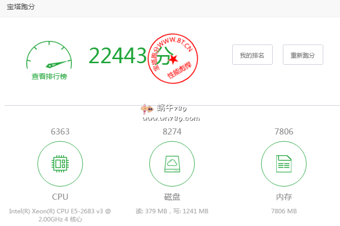 1、云服务器基本性能测试。vmware架构,E5-2683 v3处理器4核心、8G内存、40G硬盘,与站长开通的促销款配置相符合。