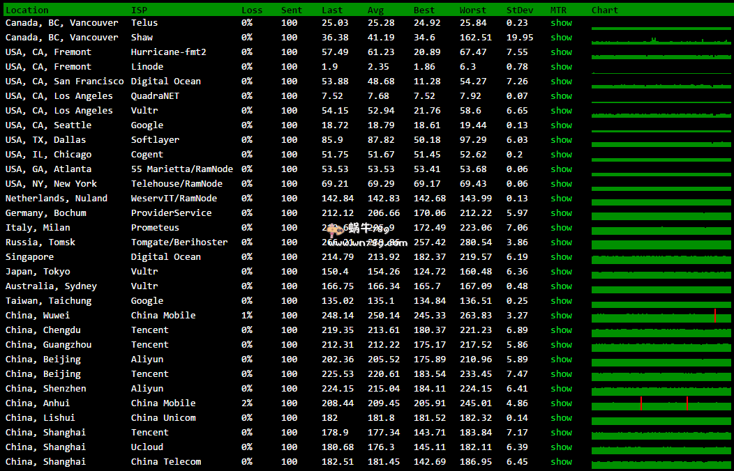 | 9 | 207.254.191.25 | 207.254.191.25 | 美国加利福尼亚州圣何塞 chinaunicom.com | AS19174 | 201.1 / 196.4 / 199.8 |