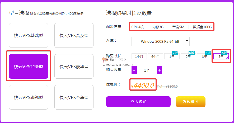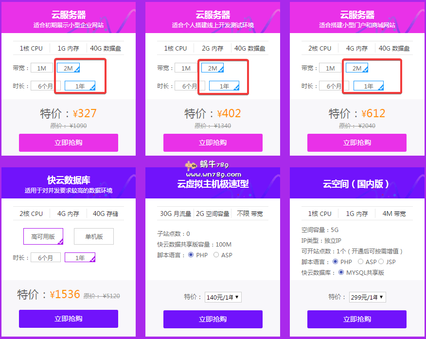 个人比较喜欢他们的快云VPS,相比云服务器来说不能升级配置,但价格五折后确实比较便宜了,个人比较推荐选购快云VPS普及型(2核2G内存、100G硬盘、4Mbps带宽,三年1350元,五年2200元)、快云VPS经济型(4核3G内存、150G硬盘、5Mbps带宽,三年2700元,五年4400元)两个方案。如果是建站使用,一般的个人博客快云VPS普及型就能满足了,如果流量比较大、从长远考虑那么就选择4核3G内存方案、一次性购五年。