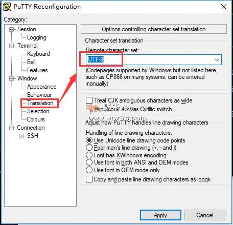 2、由于脚本采用的是中文,如果用Putty连接的SSH出现乱码,我们只需如下图设置一下putty即可。(此步骤参考@微魔部落)