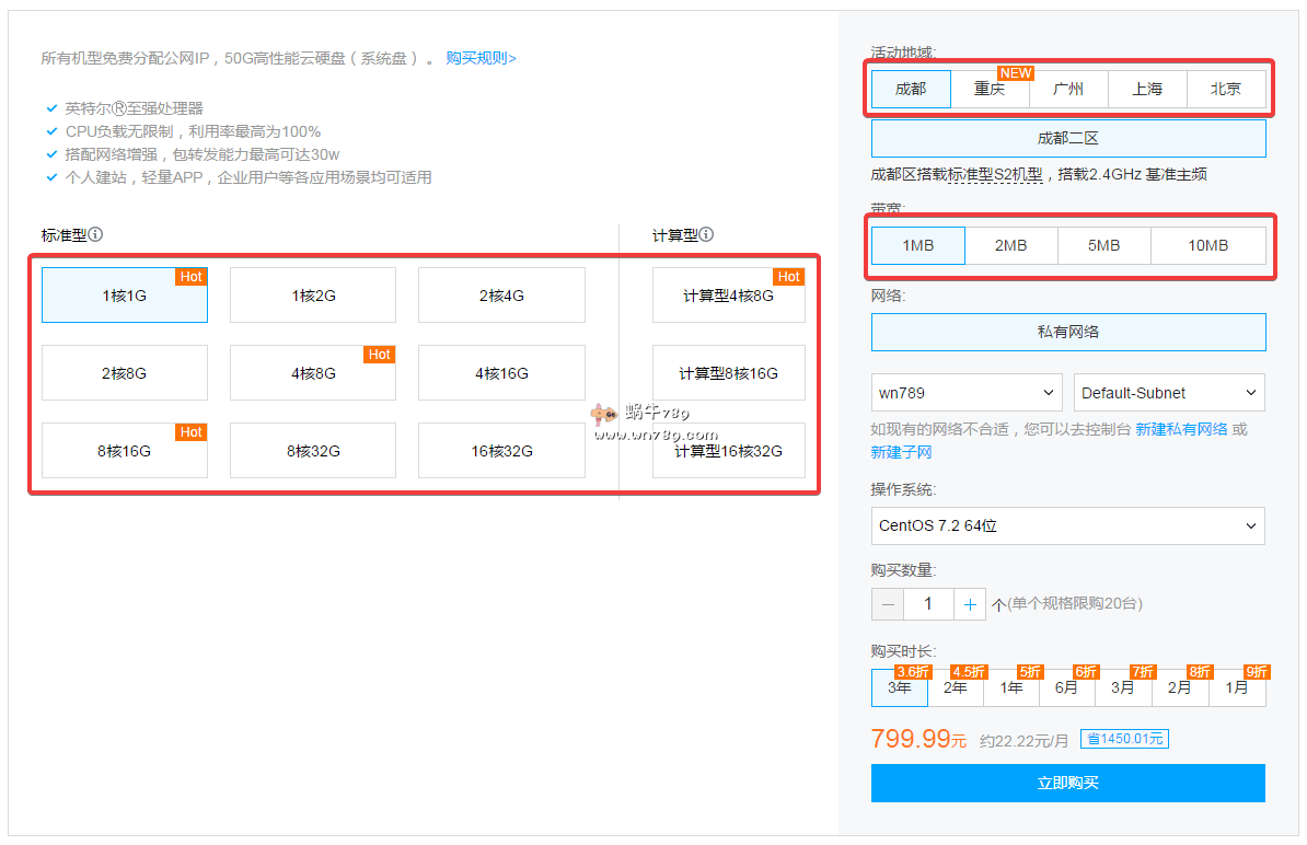 站长在下面对促销活动的12款配置做了表格,可比较直接的进行对比。成/重、北/上/广分别指的是成都、重庆、北京、上海、广州节点。标注的价格单位是“元”,价格是一次性购买三年的价格,当然官网活动页面大家可以选择1个月-3年的周期,站长之所以标注3年的价格是因为一次性购买三年更实惠。如果是建站使用站长建议选择2Mbps或5Mbps带宽基本够用了。下面是促销云服务器产品促销力度介绍: