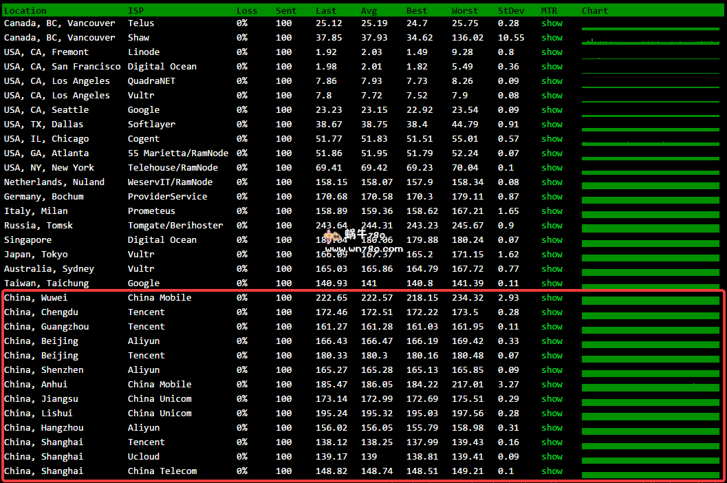 | 9 | 207.254.191.25 | 207.254.191.25 | 美国加利福尼亚州圣何塞 chinaunicom.com | AS19174 | 151.8 / 151.6 / 151.8 |