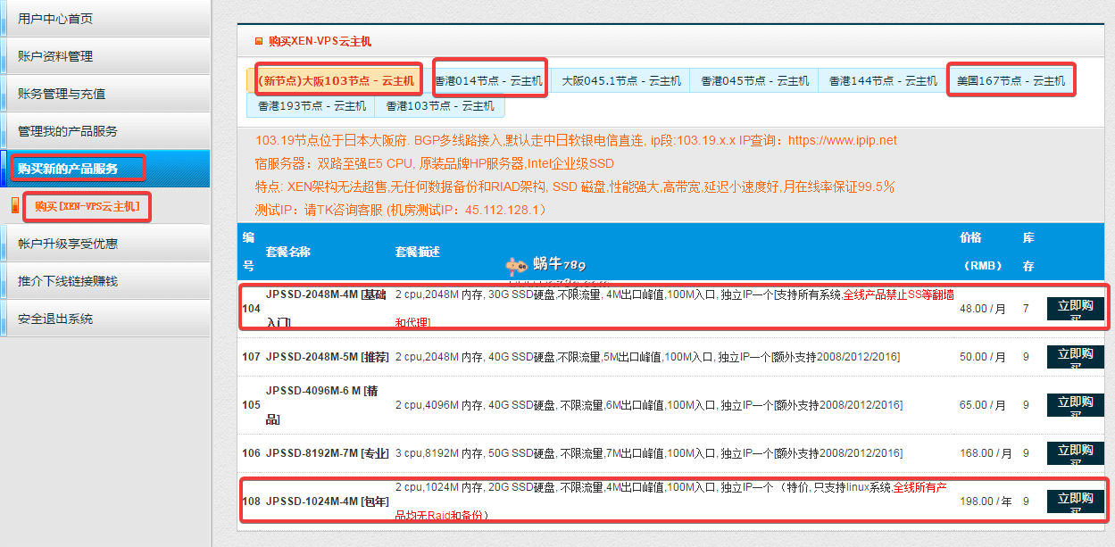| 大阪103节点 | 2核心 | 1GB | 20GB | 4M出,100M入 | linux | 点击购买 | |