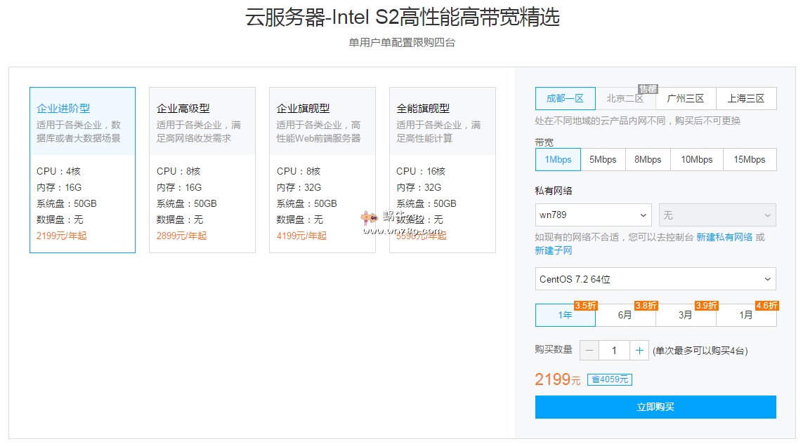 | 企业进阶型4核16G | 成都一/北京二/广州三/上海三 |
