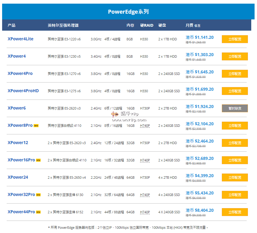 Dataplugs(多线通)是一家香港IDC服务商,拥有超过十年经验,主要提供服务器租用及托管,虚拟主机等服务,备有十线BGP高速冗余网络及CN2/CT,CU,CMI中国高速专线,安全可靠。猪年快到了,今天商家工作人员联系站长送上新春优惠,即日起至 2019年2月15日上午11时 (香港时间),租用任何PowerEdge或迷你存储独立服务器方案,除了可享原有优惠价之外,更有额外9折优惠。数量有限,售完即止。多线通的PowerEdge独立服务器及迷你存储独立服务器设于高端T3+香港机房,每款服务器方案含2个独立IP、100M独立国际带宽、100M本地 (HKIX) 带宽、也可选CN2直连中国、不限流量、稳定,月费低至港币758起。如果需要更大带宽作影片串流或直播之用,还可以联络销售代表以优惠价升级至1Gbps独立国际带宽。