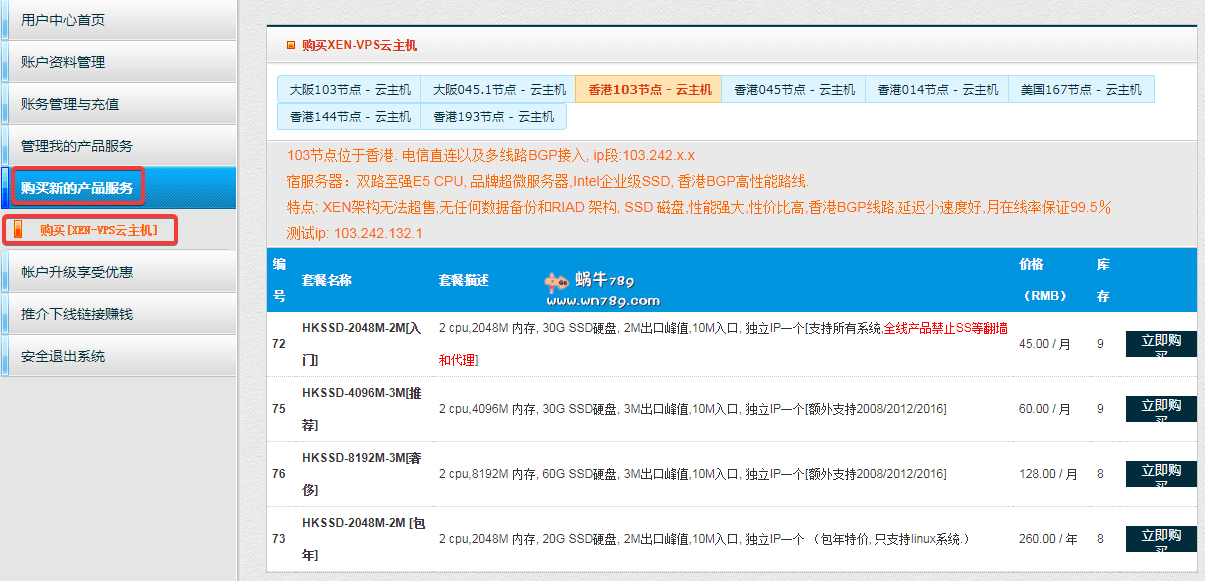 如何选购上面列举的方案?点击上面购买地址,注册一个账号并登陆用户面板,然后如下图选择对应方案即可。