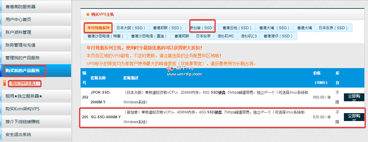 如何选购上述两个方案?点击上面的购买地址到官网注册一个账号,并登陆用户管理页面,然后如下图选择即可。