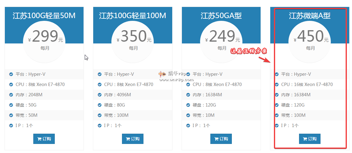 下面是促销方案,高配、高防、大带宽、大流量,江苏宿迁移动。