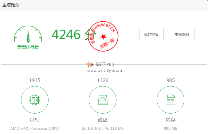 6、UnixBench跑分测试。1核1G内存得分926.3,不错了。