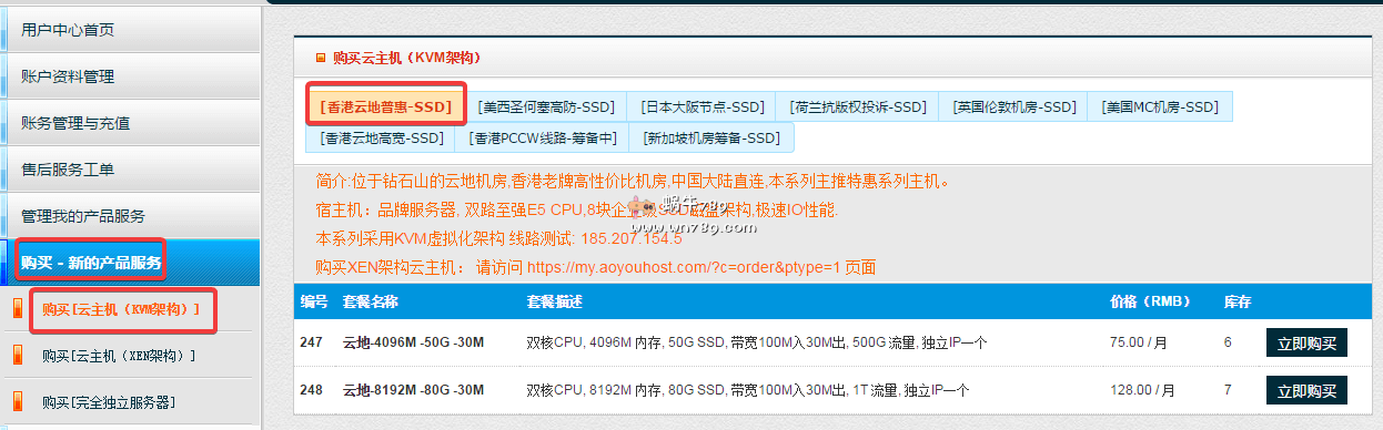 快速选购香港云地普惠版方案教程。点击上面的购买地址注册一个账号进入用户中心,如下图可以快速找出香港云地普惠方案。