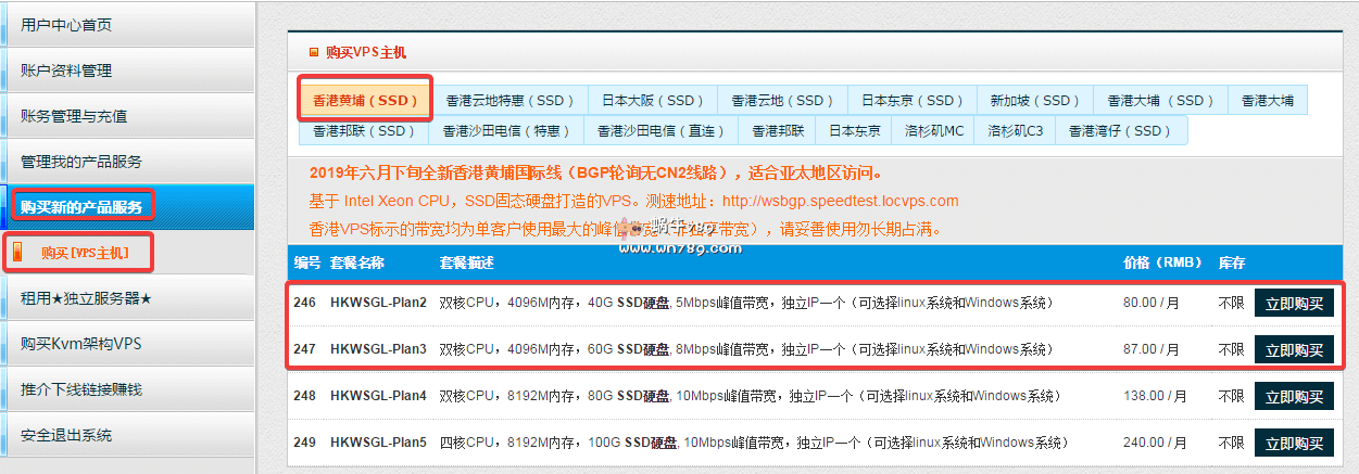 香港黄埔VPS购买教程。点击上面的直达链接到商家网站注册一个账号并登陆,然后如下图可以选择香港黄埔VPS方案。