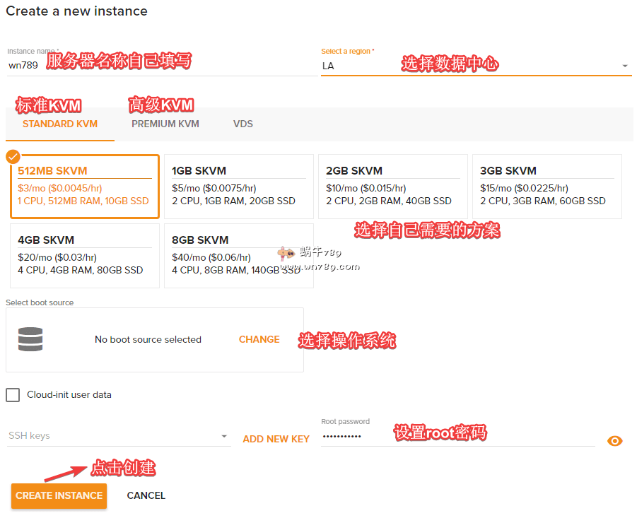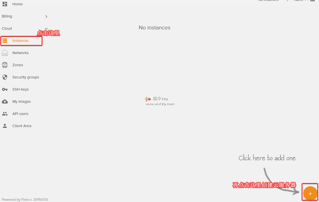 2、进入云面板后如下图创建云服务器。