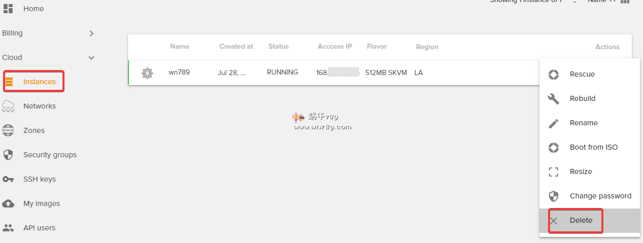 3、如果你自己购买的云服务器产品不需要使用了,如下图可以删除,删除后不会再扣费。