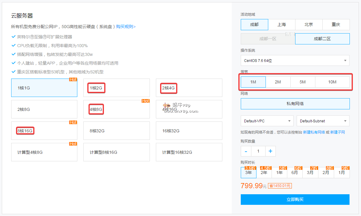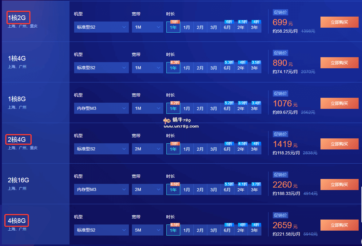 如果实在没有也可以看看新手秒杀活动页面下的“促销产品特惠”活动,所有用户均可以参与,推荐配置为1核2G、2核4G、4核8G方案,大家可以根据自己业务需要服务器的时间来选择年限,最高可以一次性购入三年,建议一次性购入三年更划算。