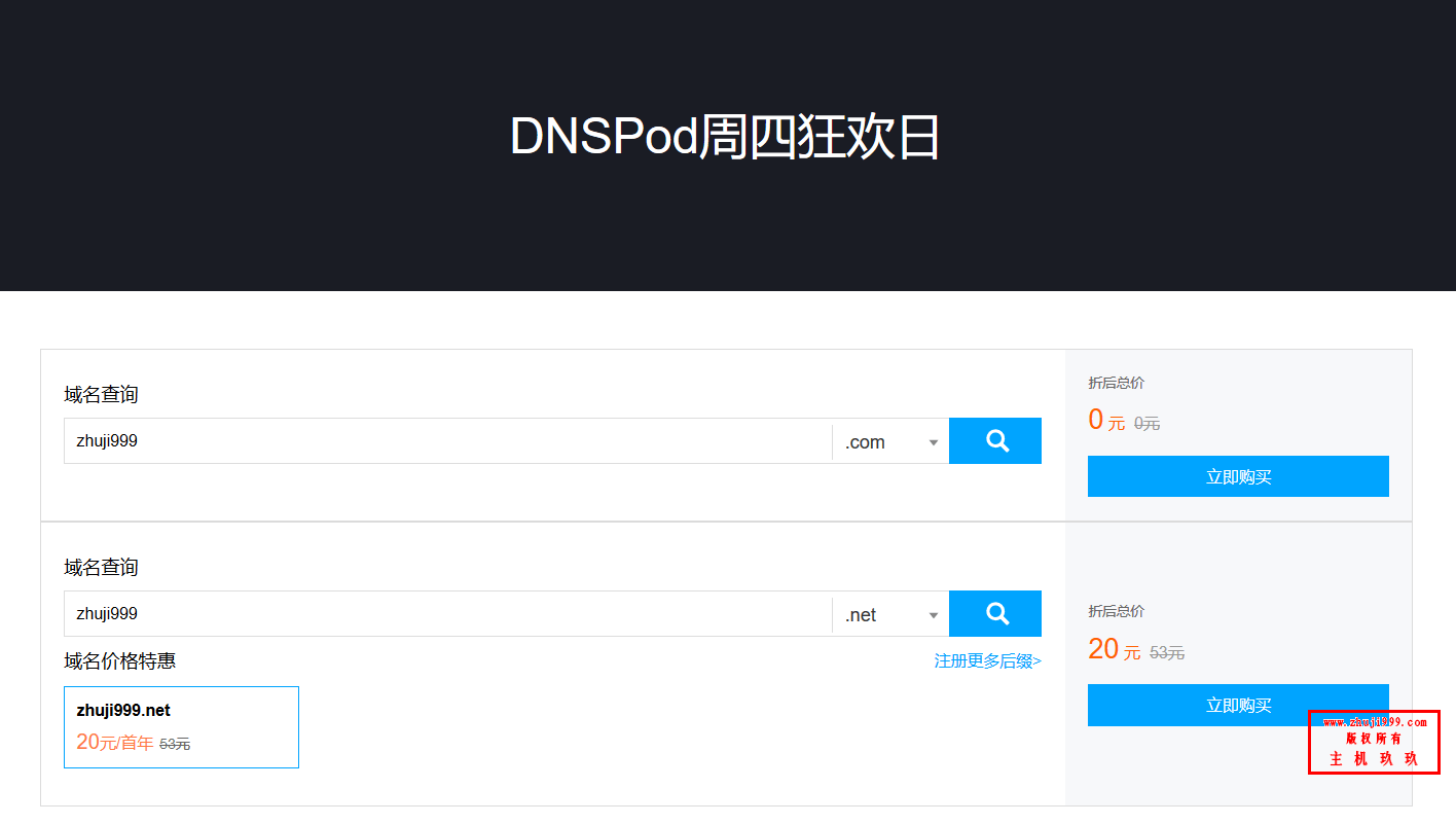 - DNSPod周四狂欢日活动地址:点击直达