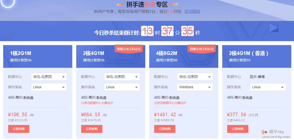 下面整理的是每日秒杀方案,只适合新用户参与,每个用户每款产品只能秒杀一次。1C2G方案为全动态bgp带宽; 2C4G1M以及4C8G2M华北-北京四数据中心为静态BGP带宽,华东-上海二和华南-广州均为动态BGP带宽。如果觉得下面方案带宽小了可以考虑选择“爆款折扣专区”的云服务器产品,最高可以配置10Mbps带宽。如果是用于建站,新开站点的话1Mbps带宽已经足够使用了。
