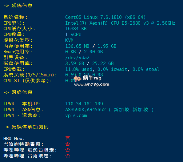 昨天站长在iON新加坡云服务器:带宽、流量限时免费升级,三网cn2直连文章当中为博友们介绍了iON新加坡cn2直连线路的云服务器产品促销活动,限时带宽、流量翻倍。iON新加坡云服务器产品定价是比较贵的,有PCCW、中国移动、cn2三种网络可以选择,最低配置是1核2G内存,最低价格PCCW线路都需要15美元/月、中国移动线路需要25美元/月、而国内访问速度最好的CN2线路更是35美元/月,相信对于普通用户来说是望尘莫及的,完全是土豪才能玩得起的节奏。那iON新加坡cn2直连线路的云服务器定价这么贵,到底性能和速度怎么样呢,站长这里拿到了一款1核2G内存的方案,并使用脚本做了测评,供大家作为购买的参考。