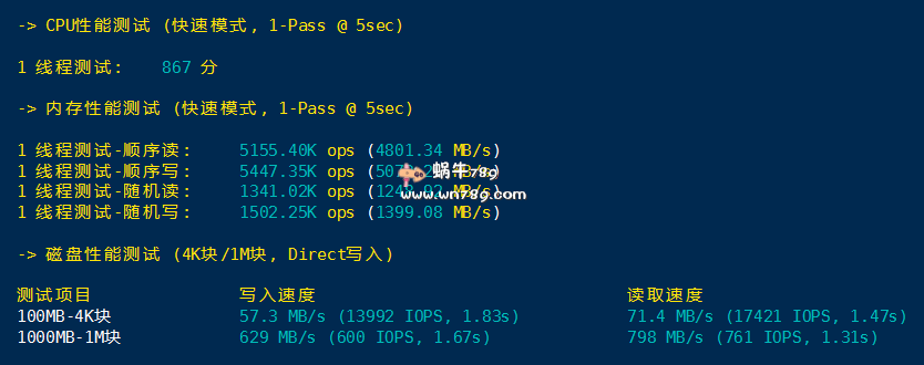 ---------------------------------------------------------------------- CPU model : Intel(R) Xeon(R) CPU E5-2680 v3 @ 2.50GHz Number of cores : 1 CPU frequency : 2499.996 MHz Total size of Disk : 25.4 GB (4.0 GB Used) Total amount of Mem : 1999 MB (263 MB Used) Total amount of Swap : 2047 MB (0 MB Used) System uptime : 0 days, 2 hour 49 min Load average : 0.03, 0.17, 0.16 OS : CentOS 7.6.1810 Arch : x86_64 (64 Bit) Kernel : 4.11.8-1.el7.elrepo.x86_64 ---------------------------------------------------------------------- I/O speed(1st run) : 574 MB/s I/O speed(2nd run) : 674 MB/s I/O speed(3rd run) : 731 MB/s Average I/O speed : 659.7 MB/s ---------------------------------------------------------------------- Node Name IPv4 address Download Speed CacheFly 204.93.150.152 1.15MB/s Linode, Tokyo2, JP 139.162.65.37 1.06MB/s Linode, Singapore, SG 139.162.23.4 1.15MB/s Linode, London, UK 176.58.107.39 1.14MB/s Linode, Frankfurt, DE 139.162.130.8 1.14MB/s Linode, Fremont, CA 50.116.14.9 1.15MB/s Softlayer, Dallas, TX 173.192.68.18 1.13MB/s Softlayer, Seattle, WA 67.228.112.250 1.14MB/s Softlayer, Frankfurt, DE 159.122.69.4 1.09MB/s Softlayer, Singapore, SG 119.81.28.170 1.15MB/s Softlayer, HongKong, CN 119.81.130.170 1.14MB/s ----------------------------------------------------------------------