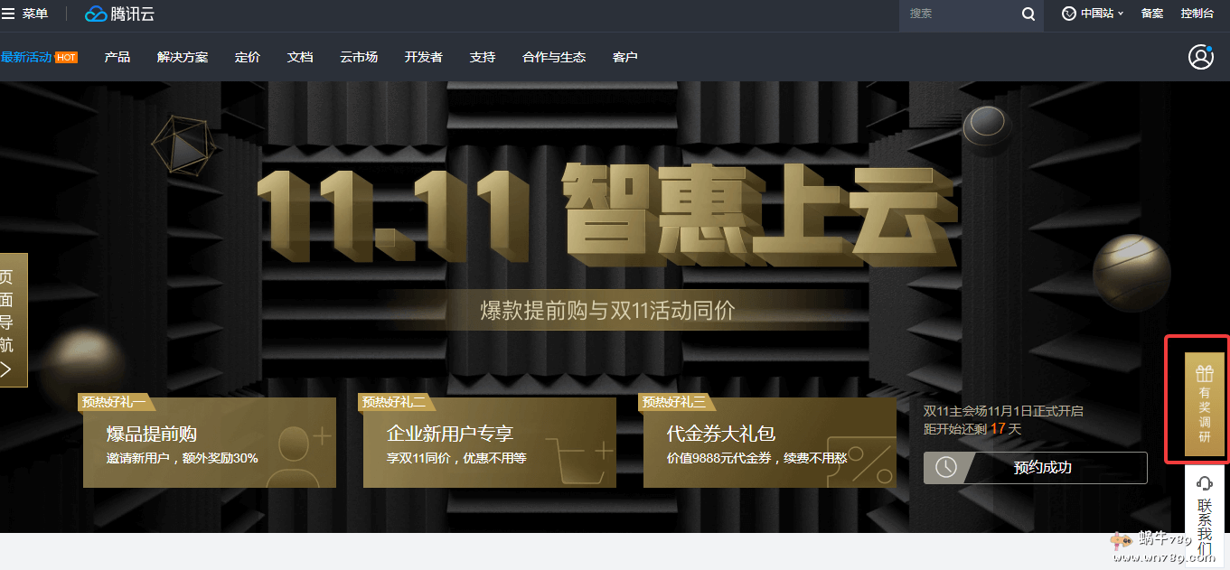 此次腾讯云“11.11智惠上云”活动除了云服务器产品活动外,还有一个容易被忽略“2019腾讯云11.11智惠上云调查问卷”的有奖调研活动,按照之前惯例参与腾讯云问卷调查活动可以领取无门槛代金券。虽然这次腾讯云并没有公布送的是不是无门槛代金券,而且代金券发放时间是要到2019年12月统一发放;不过参与方式非常简单,只需简单几道题目就完成了,有兴趣撸一撸的可以上车。