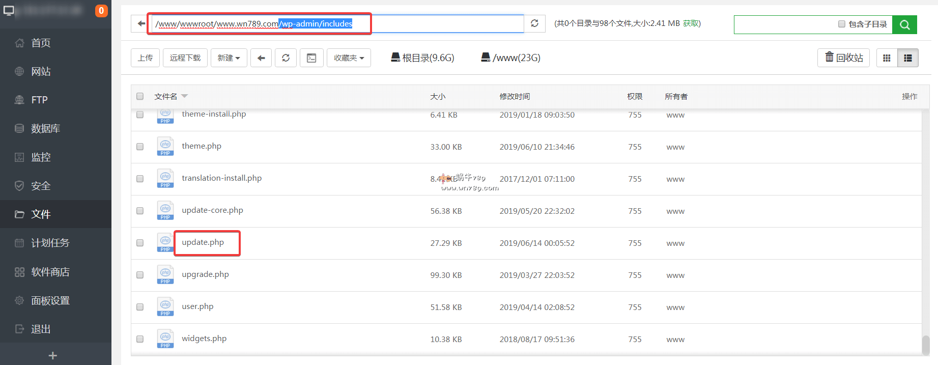 提示升级错误,我们首选到服务器找打WordPress的升级文件“update.php”,在“/wp-admin/includes”目录。站长使用的是宝塔Linux面板,直接用在线文件管理就找到了相应文件,如果你对宝塔Linux面板感兴趣可以查看此文章,有免费版也有收费的专业版:#建站面板推荐#简单好用易上手的Linux建站面板/宝塔Linux面板专业版/首月0.99元体验/年付382元/三年716元/终身授权1388元。