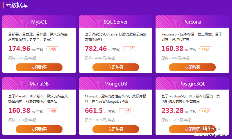 | CPU | 内存 | 硬盘 | 带宽 | 折扣 | 1年 | 2年 | 3年 | 购买 |