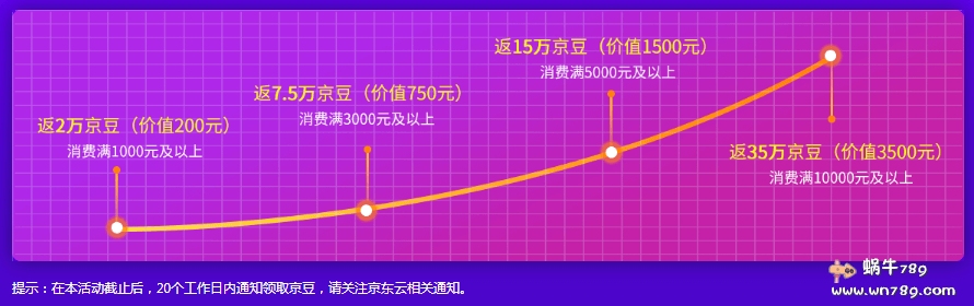 此次京东云促销的云产品不但折扣低至0.9折起,而且还有返京豆活动,关于京豆是做什么的,站长这里也简单介绍下:京豆可直接用于支付京东网站订单(投资性金银、收藏品和部分虚拟产品等不支持京豆支付的产品除外),在消费时100京豆可抵1元现金使用,京豆支付不得超过每笔订单结算金额的50%。 如:结算金额是100元,50%就是50元,那结算时最多只能用5000个京豆支付。打个比方我们购买4核8G内存、5Mbps带宽的云主机三年,消费3129.84元后还可以获得7.5万京豆、价值750元,可以用于在京东购物时抵扣。