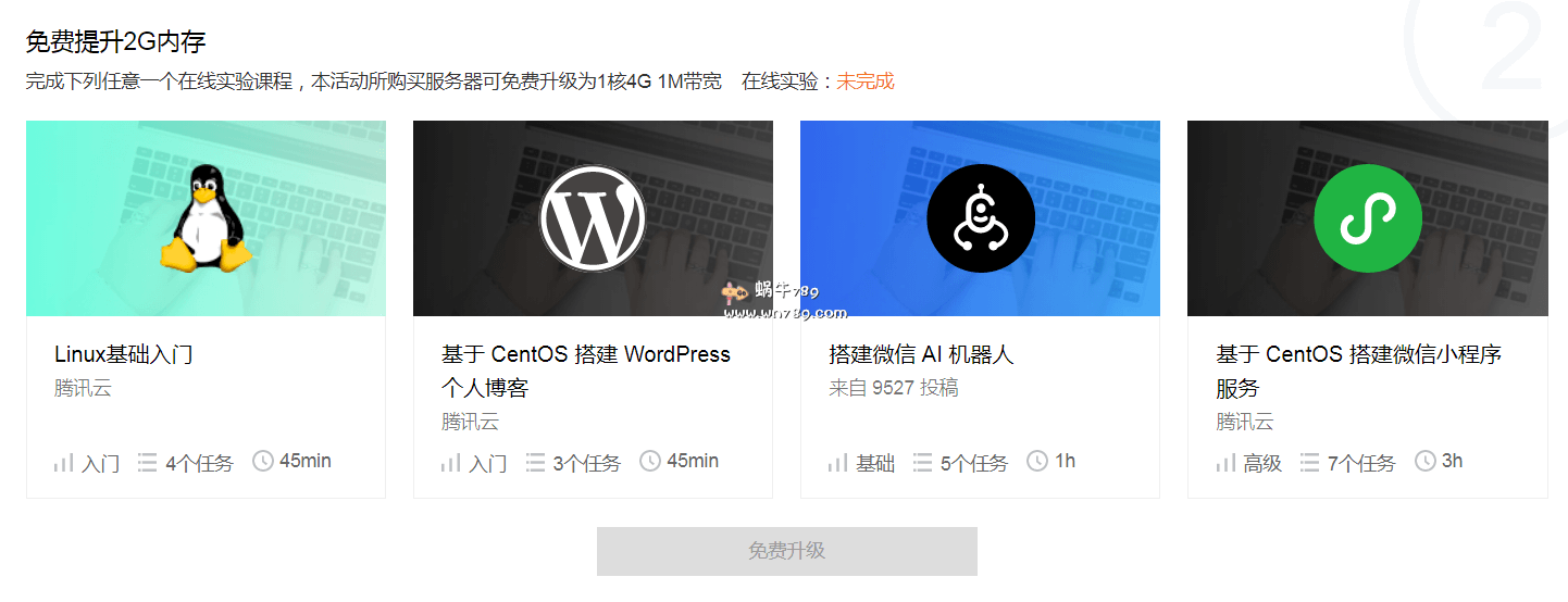 3、云服务器购买后,我们就开始做任务了。任务一个一个来,首先是“免费领取2G内存”。完成四个中的一个任务即可免费领取2G内存。