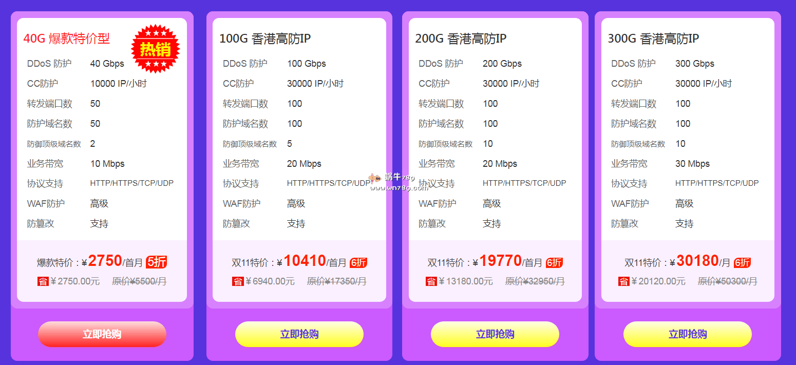 有香港高防需求的可以关注下香港高防IP促销活动。DDoS+CC 防护、支持 HTTP/HTTPS/UDP/TCP协议,网站、非网站全业务支持。一次性最多可以选购一年。